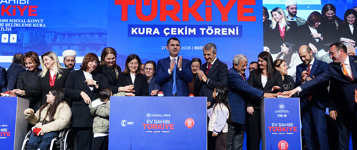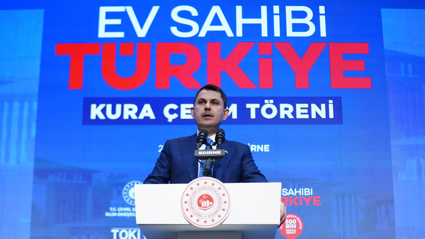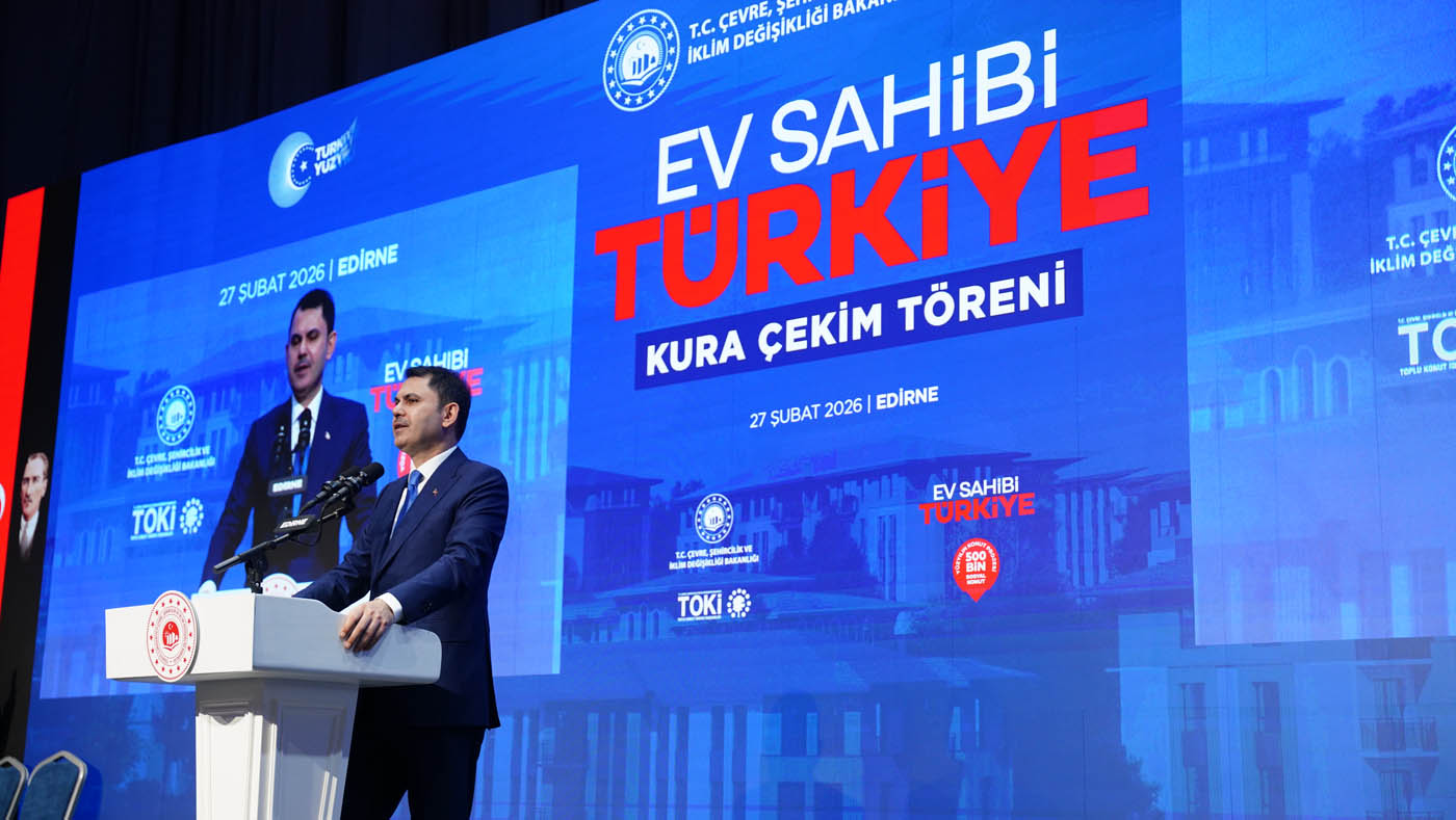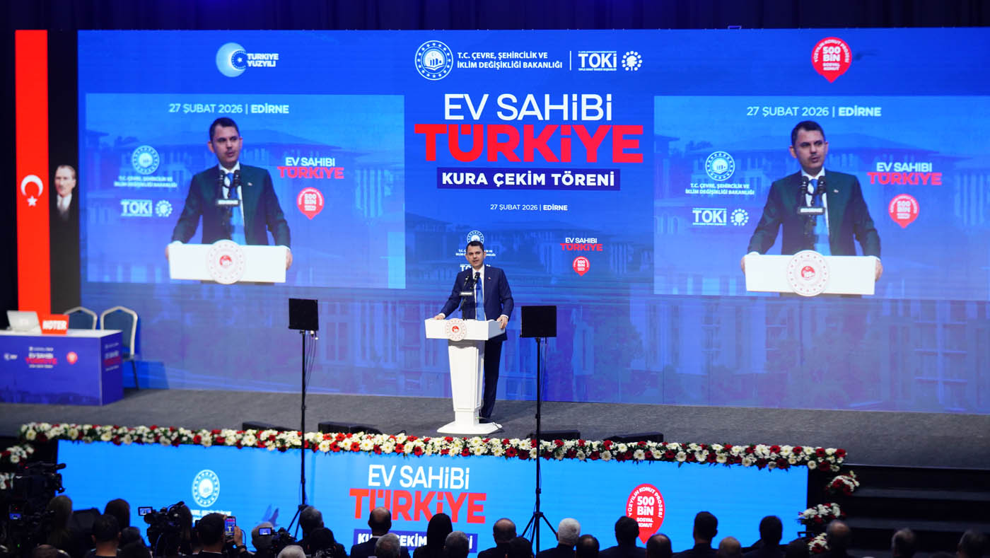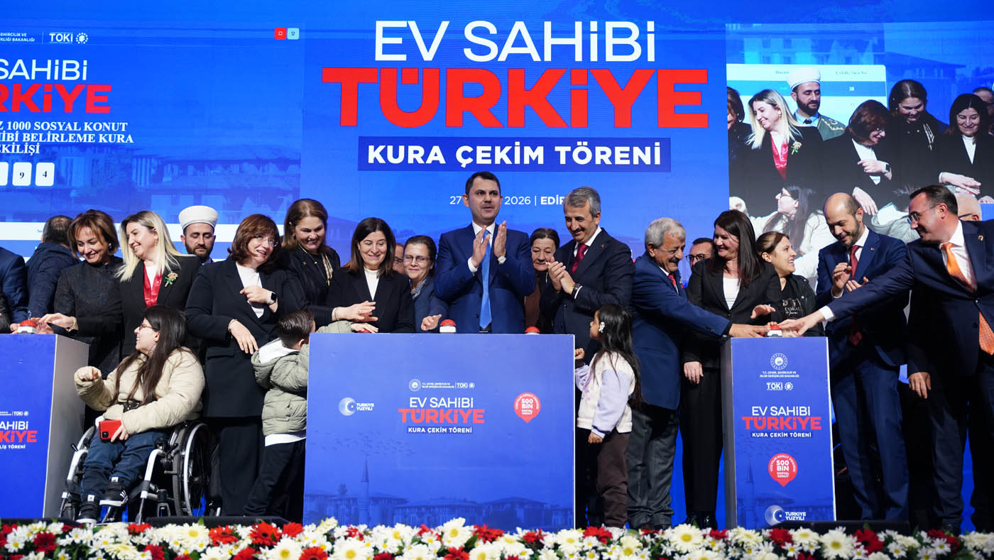 Edirne’de "Ev Sahibi Türkiye" kura çekim töreninde konuşan Çevre, Şehircilik ve İklim Değişikliği Bakanı Murat Kurum, bugüne kadar 72 ilde 314 bin 496 konutun hak sahiplerinin belirlendiğini açıkladı. Bu projenin sosyal devlet anlayışının tezahürü olduğuna dikkat çeken Bakan Kurum, “Biz, şehirleri kağıt üzerinde anlatanlardan değiliz, sahada kuranlardanız. Bizim en büyük şahidimiz 11 ilimizdir, güzel Edirne’mizdir. Biz ‘bu devlet bu enkazın altında kalır’ diyenlerden asla olmadık; devlet gibi devlet nasıl olur, milletine sadık devlet nasıl olur onu gösterenlerden olduk. Bu milletin yarınları için gece gündüz koşturmaya, 81 ilimizin her yerinde Sinan’ın izinde yürümeye, her ilçesinde, her mahallesinde var olmaya devam edeceğiz” dedi. Bakan Kurum, Resmi Gazete’de yayımlanan Yarısı Bizden Kampanyası ile ilgili yeni düzenlemeye ilişkin de “İstanbul’da uzun süredir beklenen bir düzenlemeyi hayata geçirdik. 31 Aralık 2026’da sona erecek Yarısı Bizden Kampanyası’ndan aynı tarihe kadar ev ve iş yerini riskli yapı ilan ettiren tüm vatandaşlarımız faydalanabilecek” ifadelerini kullandı.