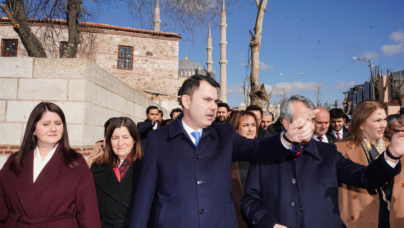 Çevre, Şehircilik ve İklim Değişikliği Bakanı Murat Kurum, Yüzyılın Konut Projesi kapsamında 500 bin konutun kura çekimleri için Edirne’ye gitti. İlk olarak Havlucular Hanı ve Tarihi Mezit Bey Hamamı’nı ziyaret eden Bakan Kurum, esnafla sohbet etti. Bakan Kurum, ardından Saraçlar Caddesi’ndeki Sokak Sağlamlaştırma Projesi kapsamında devam eden restorasyon çalışmalarını inceledi.