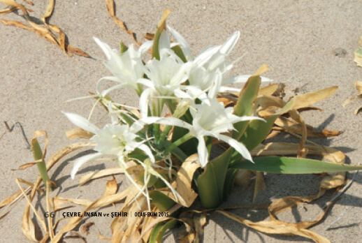 Akgöl çevresindeki kumul alanlar için en yaygın dominant bitkiler, yazkış çiçekli kalabilen Ononis natrix ve Euphorbia paralias’tır. 0-3m’lik kumul tepelerinin üzerine Mvrtus communis (Mersin çalısı), Paliurus spina cristi (Kara çalı) ve Vitex agnus castus kaplamıştır. Kumul tepelerinin deniz kıyısı sahil şeridi bitkileri arasında oluşturduğu set, rüzgarı büyük oranda engelleyerek Allium sp., Iris sp.(Süsen) ve Muscari sp. Gibi bahar türlerinin de gelişmesini sağlayan bir zemin oluşturmuştur.
